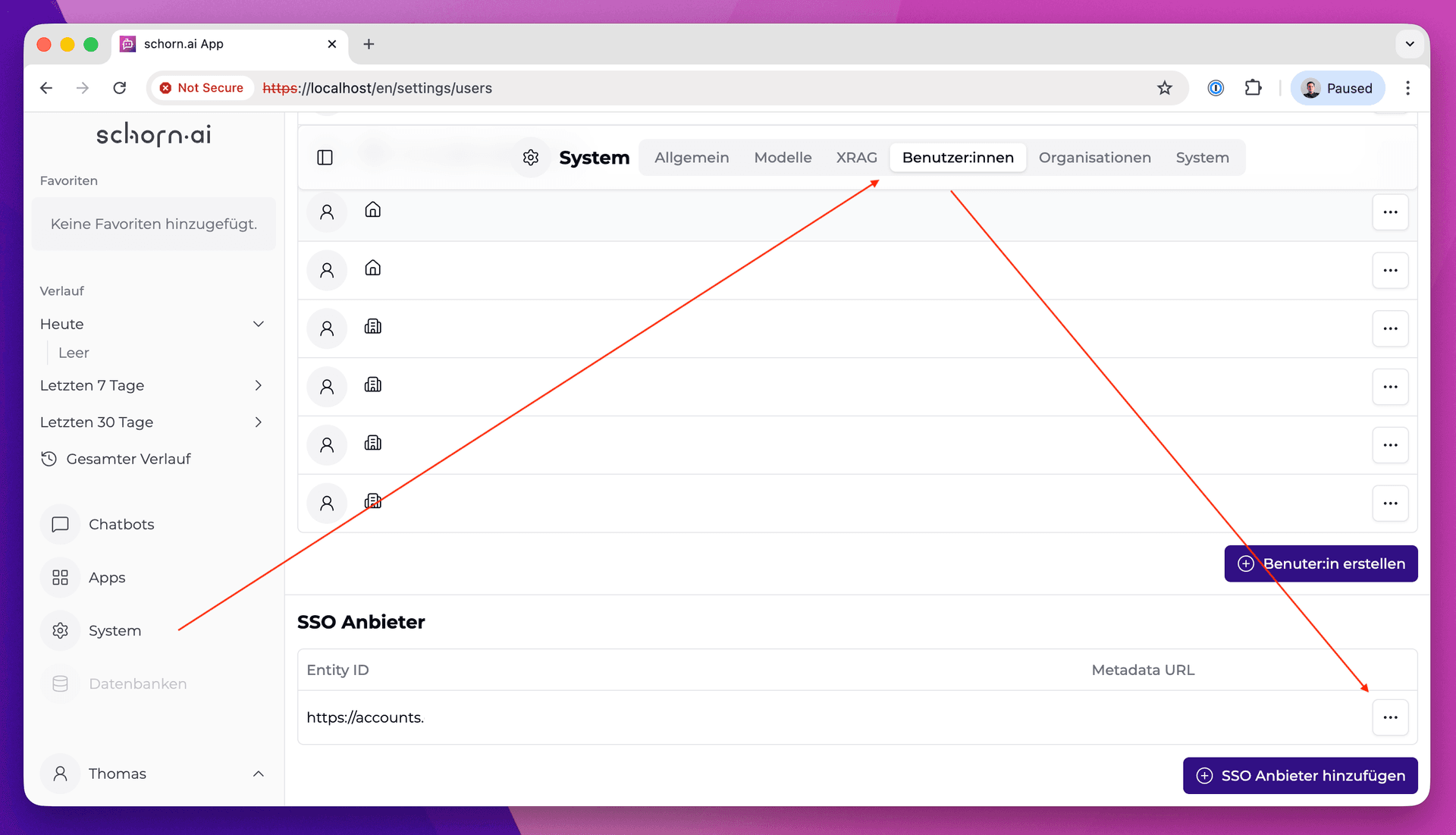 Navigieren Sie zu System > Benutzer:innen und öffnen Sie die Bearbeitungsansicht des gewünschten SSO-Anbieters.
