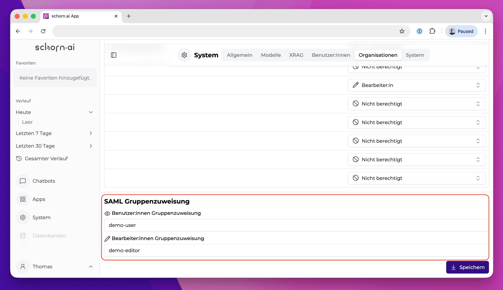 Sobald sich ein:e Benutzer:in über SSO anmeldet, werden die Gruppenzuweisungen automatisch angewendet.
